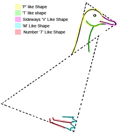 I color coded this one a bit too. I highlighted the tail in yellow to show you that it looks like a letter ‘m’. I highlighted the belly and back … notice how it follows the triangle outlined shape.