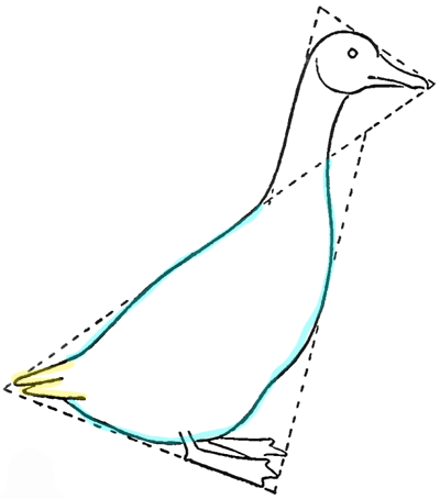 So now you can erase the triangle outlines. Now you can draw the Goose’s wing which looks a bit like an upside down ‘J’ without the top.