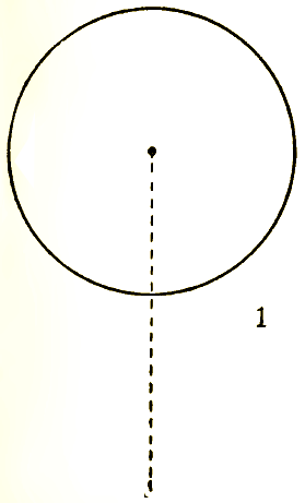 First, draw a circle. Find the middle of the circle. From that point, draw a line down from the center (as shown above).