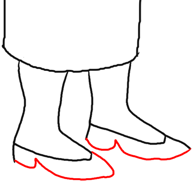 Draw the inside of Marge’s shoes by drawing 2 number ‘7’ or letter ‘L’ like shapes.