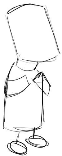 Firstly, try to sketch out the basic shapes that make up Millhouse, such as a rectangle head. It doesn’t have to be any where near perfect…just try your best, and then go to step #2 when you are done with that.
