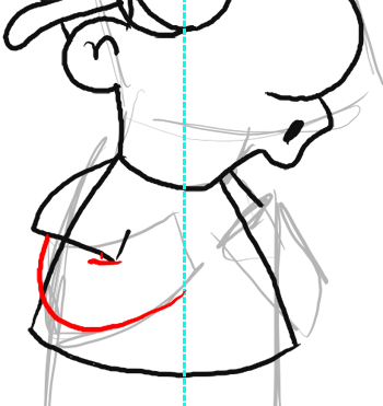 Now draw part of Millhouse’s left arm by drawing a curved line.