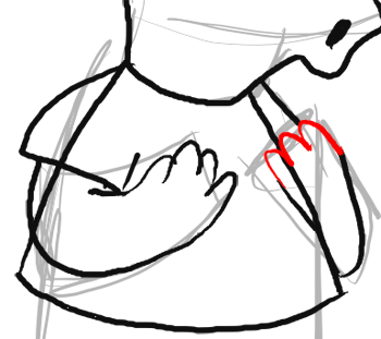 Now draw an ‘m’ like shape with an extra hump for fingers.