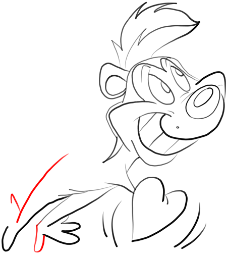 Now draw a letter ‘v’ like shape under Pepe’s left cheek. Also draw some more lines on the skunk’s chest.