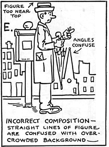 E. This comic strip panel shows an example of incorrect composition. The straight lines of the comic character are confused with an over-crowded background.