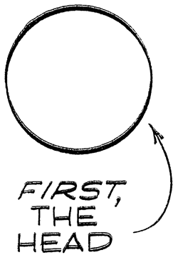 Firstly, draw the head as a circle. (You can look at more details for drawing a cartoon face with this tutorial on drawing cartoon faces and heads).