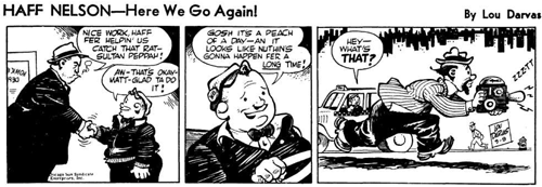 This complete week of comic strips shows how the continuity can sustain the interest of the readers. Notice that these strips use only three panels a day.