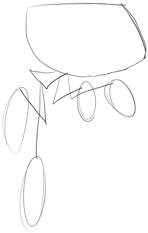First, start drawing Dee-Dee by drawing the basic shapes that build up her form such as a sideways letter ‘D’ for her face and ovals for her hands and legs.