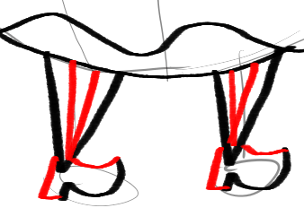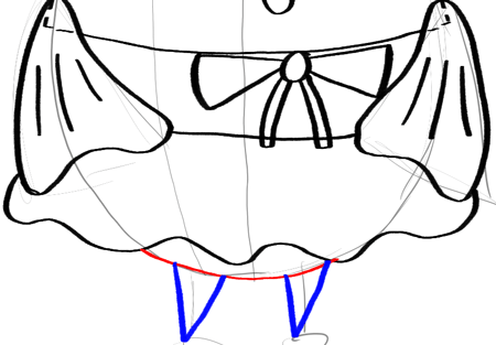 Now draw the bottom of Mrs. Puff’s body (remember, you drew Mrs. Puff’s body in step #1 so now just refine the shape to make sure that it is right). Draw a triangle for each leg.