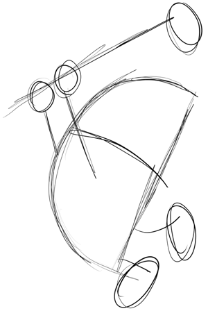 First, lightly sketch the basic shapes that make up Barney’s form such as a backwards letter ‘D’ for his body.