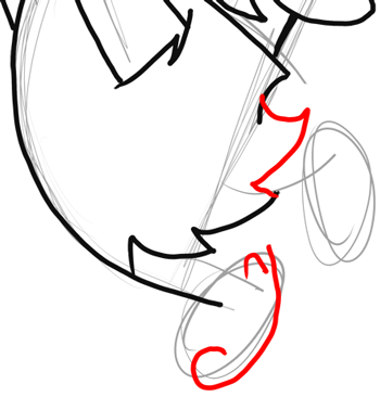 Now, draw the fists as number ‘3’ shapes. Also darken the shape of the body with more confident lines.