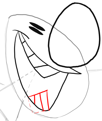 Now draw the back of Billy’s mouth / throat and tongue by drawing a half circle for the tongue and a half of a letter ‘U’ like shape for the back of the throat.