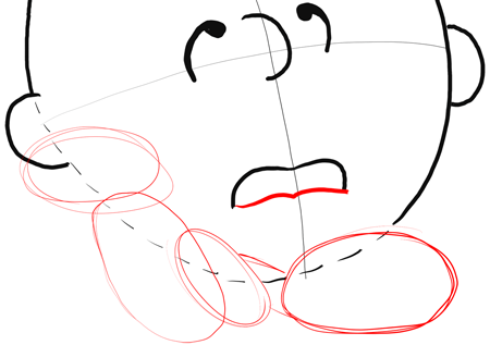 Draw the bottom of his mouth now. Draw a bunch of ovals to make up the basic shape of his arm / hand.