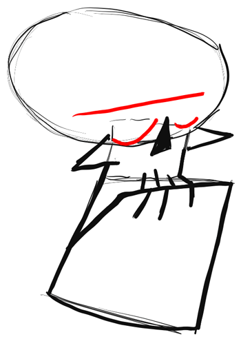 Now draw a triangle on both sides of the middle rectangle, about where the oval and rectangle meed. Also draw an angled line from the top right corner of the square to about the middle-left of the square.