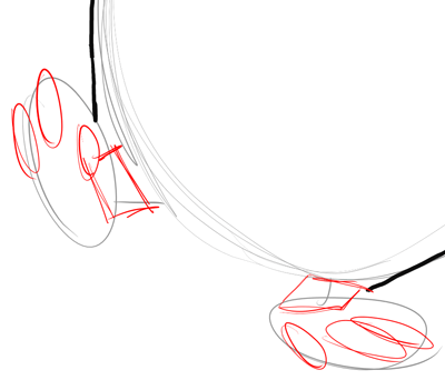 Now draw the outline of the feet and ankles by outlining the shapes that you drew in the previous step.