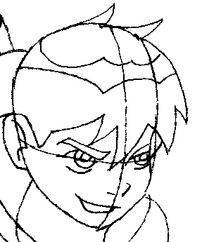 Now draw the top of his eyebrows and the hair line.