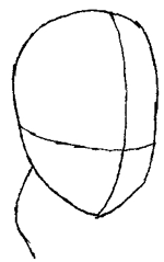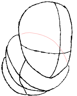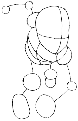 Draw an oval that goes behind the head. This is his chest area.