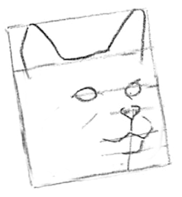 Now let the rectangle help you draw the face shape of the cat.