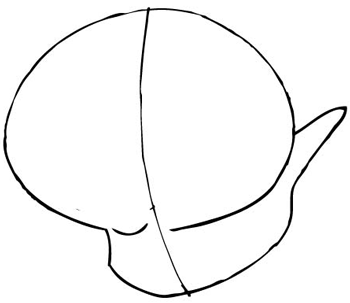 Draw an egg shaped circle around the line, which represents its head