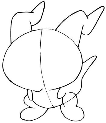 Draw the body and the tail of the character, which is smaller than the head.
