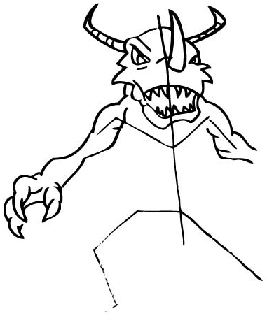 Start by drawing the teeth and also the outlines of the arms.