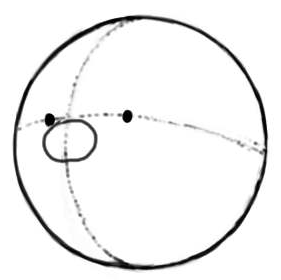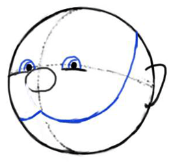Step 1) Draw a circle and mark lines for the nose and the eyes.