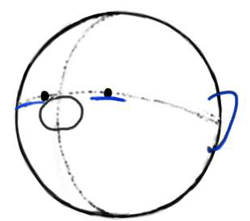 Step 3) Draw two curves starting from the vertical “nose-line and end right above the ear