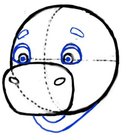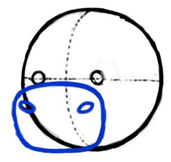 Step 1) draw a circle, mark a vertical and a horizontal lines for the nose an the eyes, mark the eyes on the horizontal line