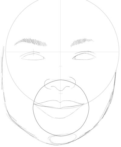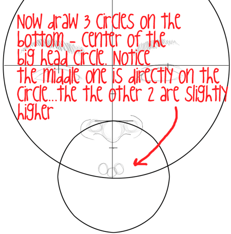 Now draw 3 circles at the bottom of the big circle…the 2 outside circles are slightly higher. These will help you draw the lips.