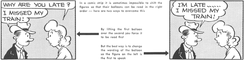 This is a part of your art that should keep growing with every new picture ‘you draw. Think when you draw: think of blacks and think of’ whites — will this or that line help guide or distract your reader’s eye? If a line or tone doesn’t help direct the eye to the right spot, change it or eliminate it.