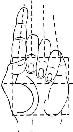 Look at the above pictures in the diagram to help you draw correctly formed hands. Notice the pentagon shape that builds up the shape of the hand.