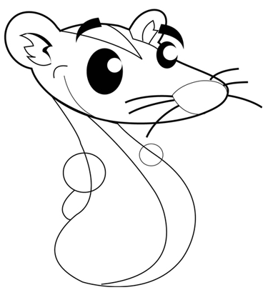4. The body. Create a curved and oval shape for the body, then add 2 small circles for the shoulders.