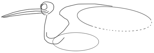 First, lightly sketch a circle for the head…a backwards letter ‘j’ for the neck and a line to represent the beak.