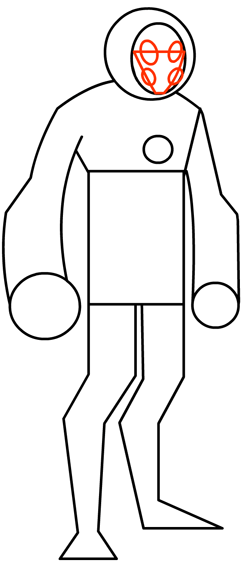 Firstly, draw the basic shapes that make up Fireblast’s form.
