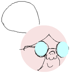 Cut away the parts of the circles that are outside of the glasses. Draw wrinkles … if you are using color, draw them slightly darker than the face that you drew the face in. The hair is gray.