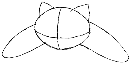 1) Start off with a lemon shape with two triangles at the top to make Snorlax’s cat-like head.