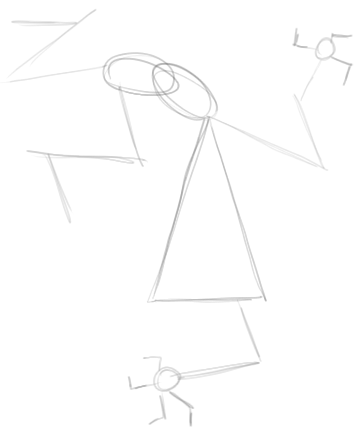 On the bottom of the triangle draw a sideways bubble number ‘8’…with 2 rectangles (eye brows).