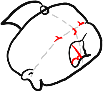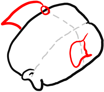 Draw a backwards number ‘3’ for the ear…and a sideways letter ‘J’ for the bottom of the face.
