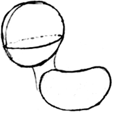 Start off by drawing a circle for the donkey’s head. You can draw guidelines around the head to help place facial features (just draw a line around the head like you would around a ball). Draw a kidney bean or lima bean shaped body. Connect the head and body with lines for the neck.