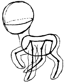 Now draw around the stick figure legs as you see above.