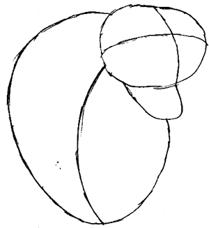 Draw a cap shape with the flap going down. Then trace a curve downwards from the top.
