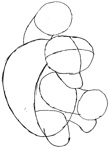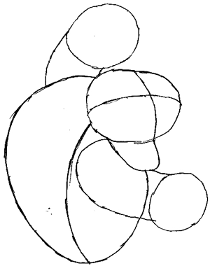 4. Draw in two more cylinders below, about half the size of the arms for Bowser’s feet.