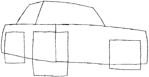 Next draw squares where the wheels should be, even the ones at the back.
