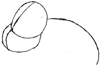 Draw two ovals sitting on top of each other. Then draw a half circle peeking out the back.