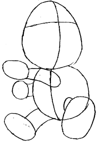 Draw two short legs and ovals for feet.