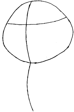 First draw a potato with a cross and a line jutting down.