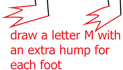 Draw a letter ‘M’ shape with an extra hump for each foot.
