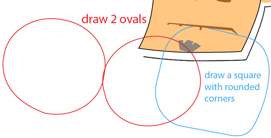 Erase parts of the ovals to make watermelon shapes. For the left water melon shape, draw two ovals to a close watermelon shape. For the right watermelon shape, close the shape with a curve. Erase the left side of the rectangle that interlock with the watermelon as seen in the illustration above. Draw an oval shape and a pill shape below the right watermelon. Draw a backwards letter ‘Z’ shape and a backwards letter ‘C’ shape below the rectangle.
