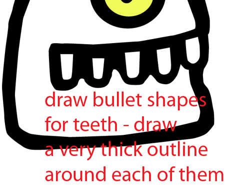 Draw bullet shapes for the teeth with a thick outline around each of them.