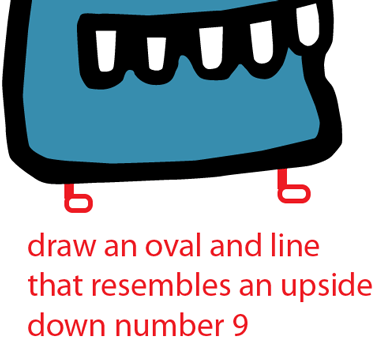 Draw an oval and while for each foot that resembles an upside down number 9.